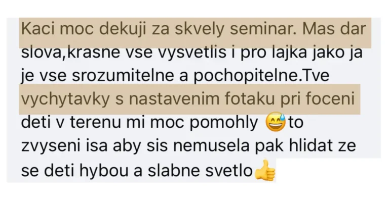 🎁 Součástí tréninku jsou i ukázky typických chyb, které dělají začínající fotografové, a konkrétní návody, jak se jim vyhnout.